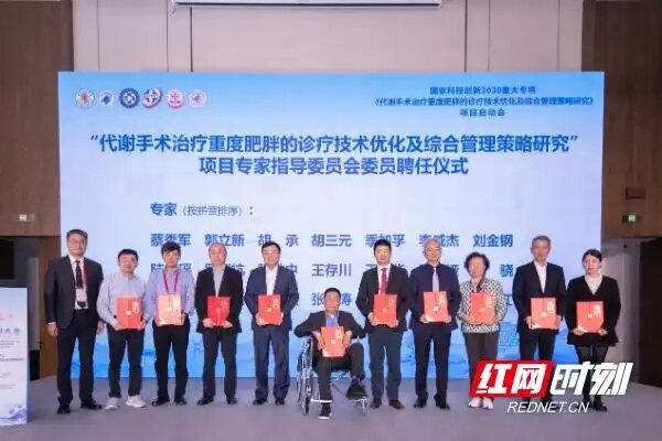 会议同期举行了国家科技创新2030重大专项《代谢手术治疗重度肥胖的诊疗技术优化及综合管理策略研究》项目启动会。湖南省卫健委党组成员、省中医药管理局局长肖文明、中南大学常务副校长陈翔教授、中南大学湘雅三医院党委书记何庆南教授出席项目启动会并致辞。该项目是我国在减重代谢外科领域布局的首个国家级重大科研任务,是我国在肥胖代谢性疾病外科治疗研究领域迈出的重要一步,标志着我国代谢手术诊疗管理研究正式迈入“国家战略引领、多学科协同攻关”的新阶段。