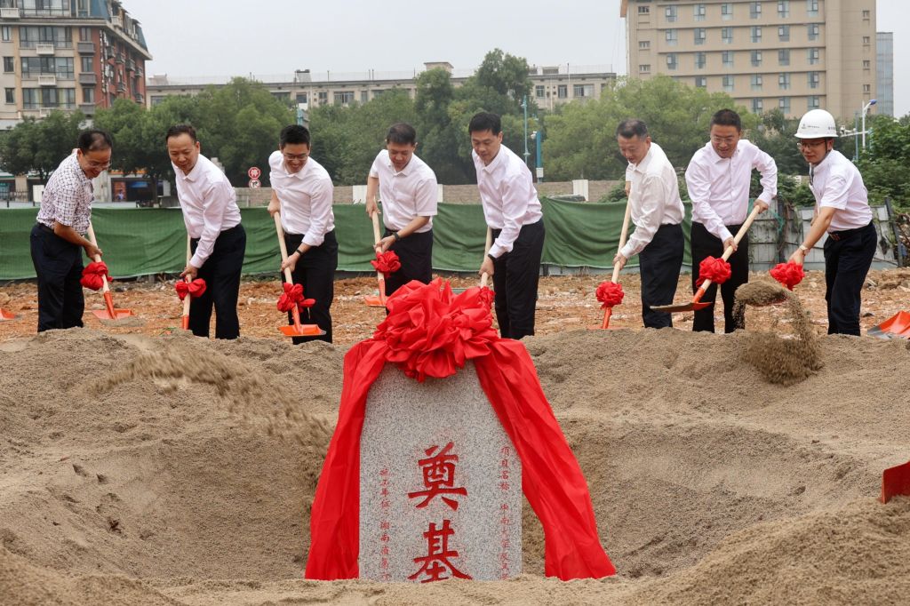 仪式现场,与会嘉宾共同挥锹培土,为交叉学科大楼奠基。