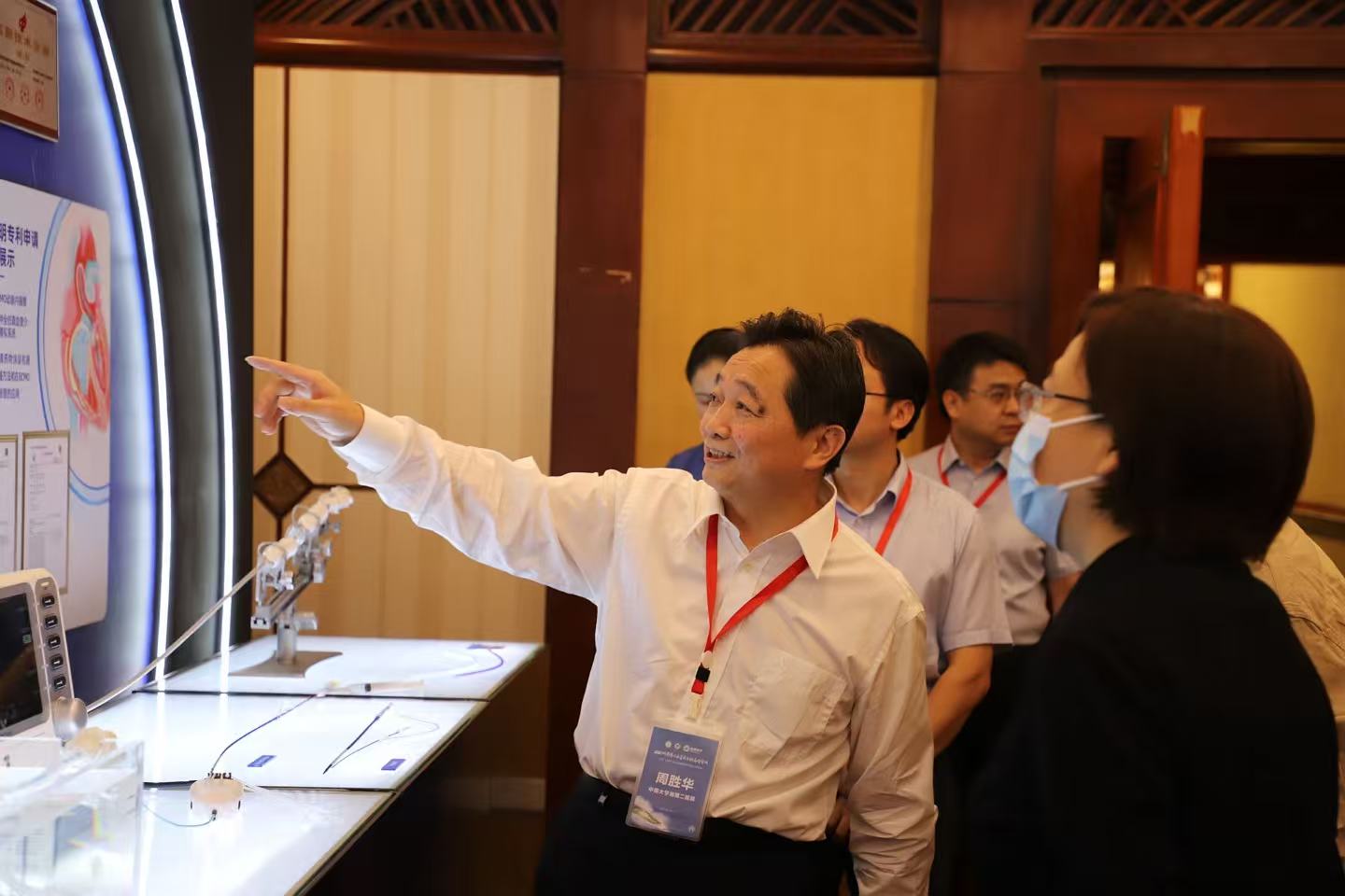 周胜华教授(左1)介绍其团队研究成果