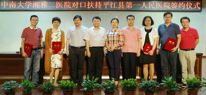 根据国家卫生计生委《关于印发加强三级医院对口帮扶贫困县县级医院工作方案的通知》(国卫医发[2016]7号)精神要求和湖南省卫生计生委的安排,平江县第一人民医院成为湘雅二医院第六家对口帮扶医院。