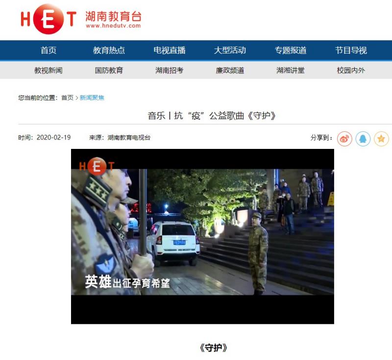 病毒无情,人间有爱。当下,神州大地正在展开一场规模宏大的疫情防控阻击战。一幕幕激昂的战“疫”场景,一个个温情故事在抗击疫情中发生着,很多场景让人涕泪俱下,也激起了中南继教学子、文津集团教育工作者刘胜松的满腔热情,他熬夜创作了一首抗“疫”公益歌曲《守护》。目前,这首歌曲被湖南教育电视台采用,置于湖南教育台网站,有搜狐、腾讯、红网、新湖南、长沙晚报、湖南文艺、秒拍、时刻、湖南教育电视台、星辰在线、湖南893音乐电台、三湘风纪网(省纪委监委)等平台陆续发布、播出和转载。还有一些中小学已经将其作为网络课堂课件内容面向学生、家长推出。点击播放量达300多万次。“只要有你我就不再彷徨,造福梓桑引领新的方向;只要五星红旗高高飘扬,祖国永远守护在你身旁。”刘胜松表示,他希望通过音乐这种表达形式,给予所有的国人一些正能量,一些温暖和鼓励。