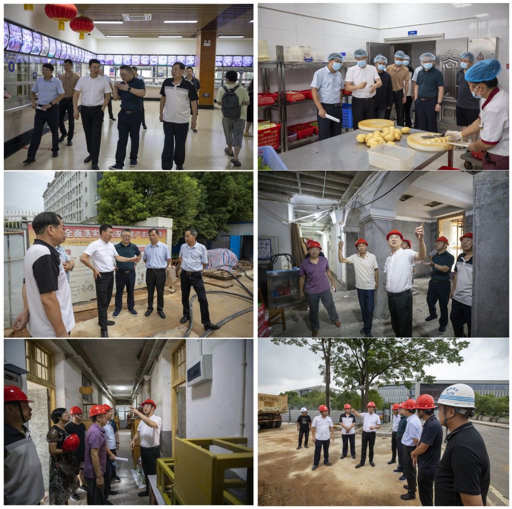 在校本部三食堂,付刚华一行检查了食品安全、消防安全、假期开餐运营等情况,要求为暑期留校师生做好餐饮保障服务。