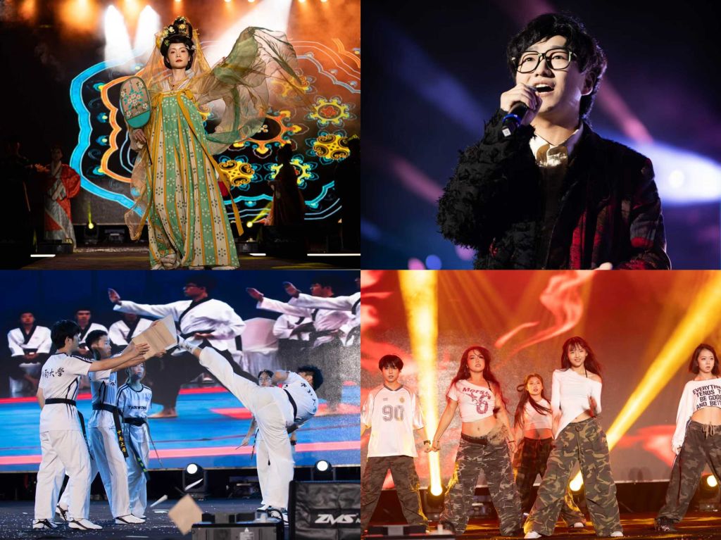 晚会节目形式多样、高潮迭起:深情演唱婉转动人、魔术表演奇妙纷呈、戏曲演绎古韵悠长、舞蹈演出飘逸灵动;更有汉服走秀与传统吟唱、跆拳道飒爽展示、舞龙舞狮气势磅礴,展现校园文化的多元融合。最终,舞月草街舞协会以活力四射的表演为晚会划上圆满句号。