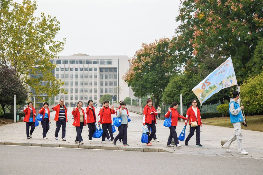 热身运动结束后,老同志们整队出发,走进中南的秋日画卷。