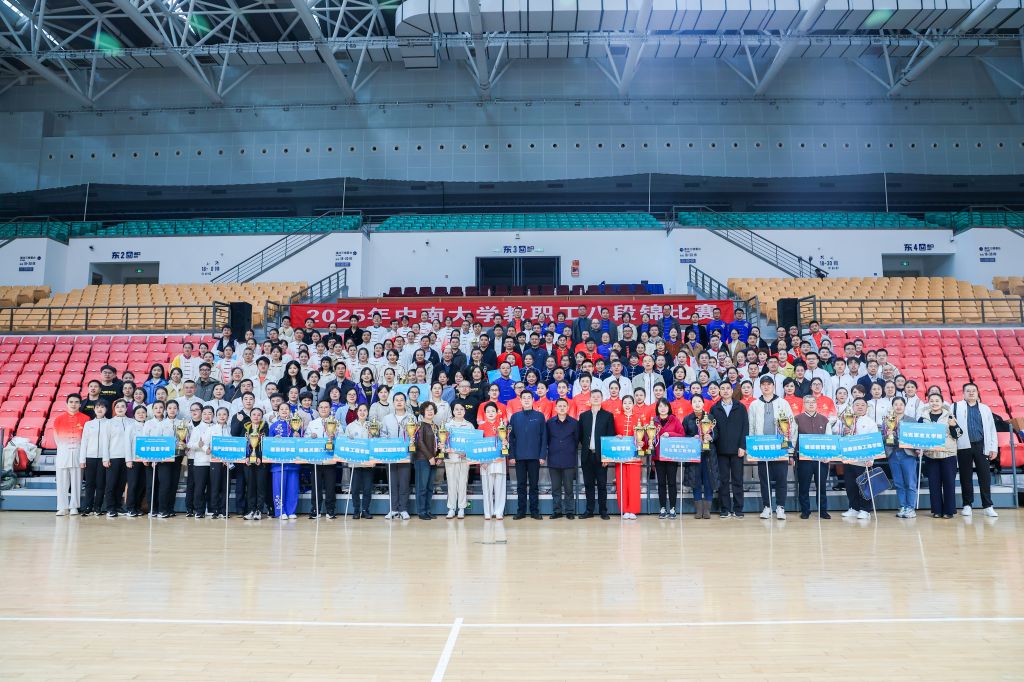本网讯 11月9日上午,由校工会主办的2025年中南大学教职工八段锦比赛在潇湘校区体育馆举行。校党委副书记、校工会主席付刚华宣布比赛开始,来自全校各二级工会的26支代表队参赛,共同演绎了一场力与美、刚与柔结合的健身盛宴。