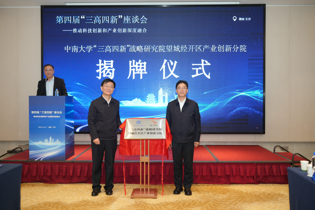 中南大学党委副书记彭立威介绍了中南大学“三高四新”战略研究院成立四年多来的成效。省政府办公厅二级巡视员谢永呼吁与会专家围绕会议主题,就完善科技创新体制机制、优化科技成果转化路径等问题深入研讨,为加快推动我省高质量发展贡献智慧。会议期间,中南大学“三高四新”战略研究院望城经开区产业创新分院揭牌成立。