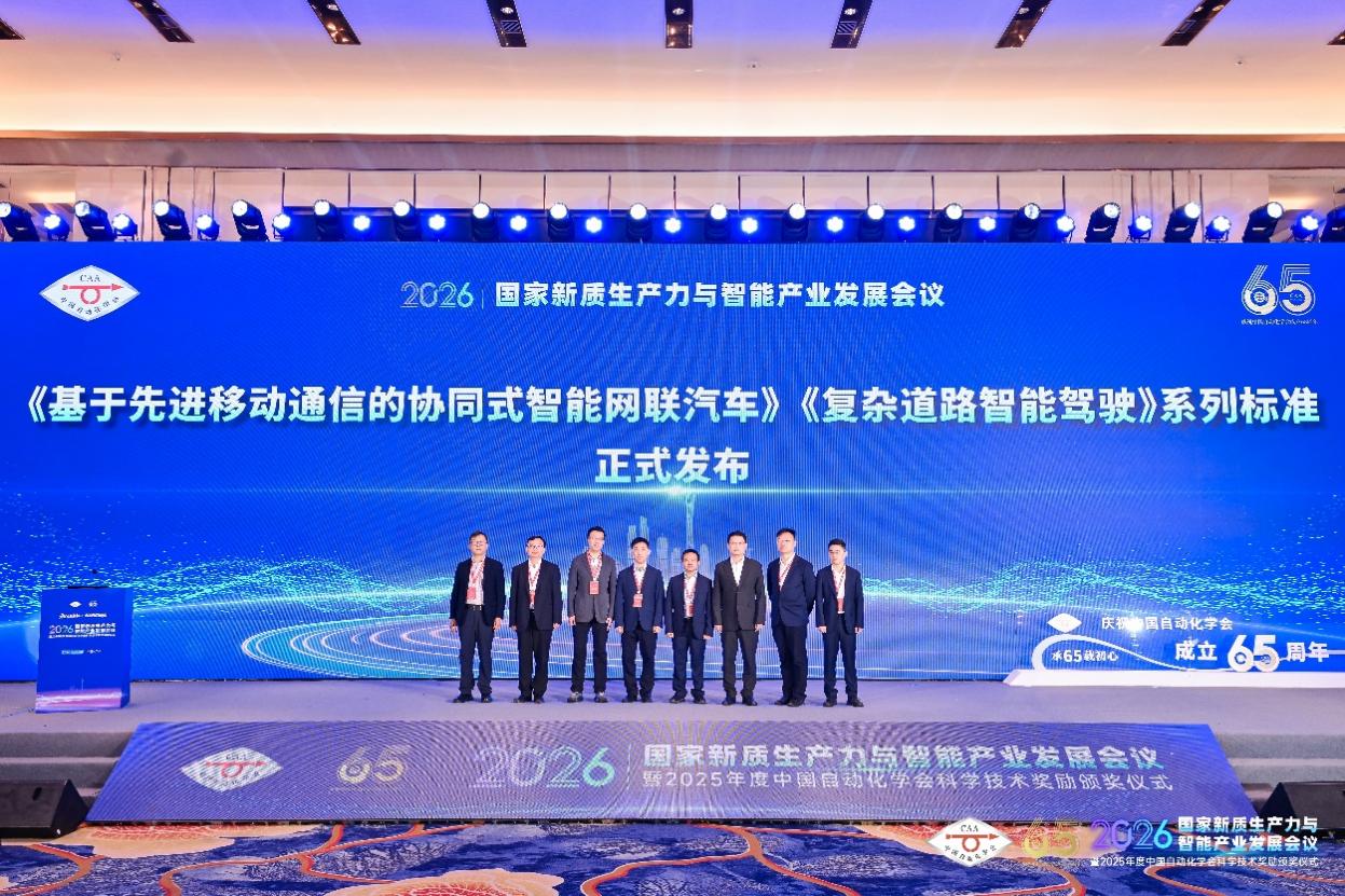 本网讯 3月28日,由中南大学交通运输工程学院智慧交通团队黄合来教授牵头,联合招商局重庆交通科研设计院有限公司、湖南大学、重庆邮电大学等单位共同制定的《基于先进移动通信的协同式智能网联汽车》7项团体标准,在2026国家新质生产力与智能产业发展会议上由中国自动化学会正式发布。