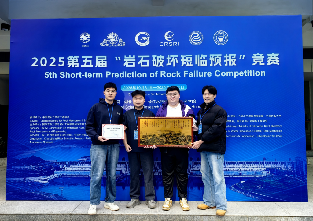 在中南大学资源与安全工程学院李夕兵、李地元和董陇军三位教授的指导下,由博士后李克升领队,博士生赵云阁、硕士生杨嘉明和陈新朋组成的参赛团队,经过与清华大学、香港大学和首尔大学等国内外15所知名高校、研究所的角逐,最终荣获竞赛总成绩第一名。