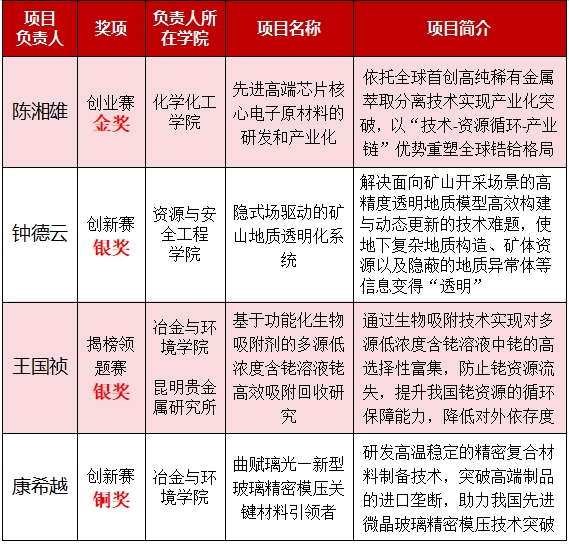 第三届全国博士后创新创业大赛中南大学获奖项目