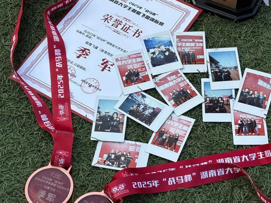 对人文学院2023级金瑞婷来说,这枚湖南省大学生极限飞盘锦标赛季军奖牌,是对那些挥汗训练的日子最好的奖励。加入飞盘社的两年多里,她感慨“腿无一日不酸”。每周一次的集体训练,备战期间为琢磨“区域防守”战术而反复观看的录像,绘制跑位图练习的夜晚,让她从最初连接盘不稳的新手,成长为全程高强度攻防的团队核心。“看得见的荣耀背后,都是看不见的日日夜夜。”对她来说,这枚奖牌,不仅见证了体能的提升和技术的成熟,更凝结着她与队友间无需多言的信任与默契。