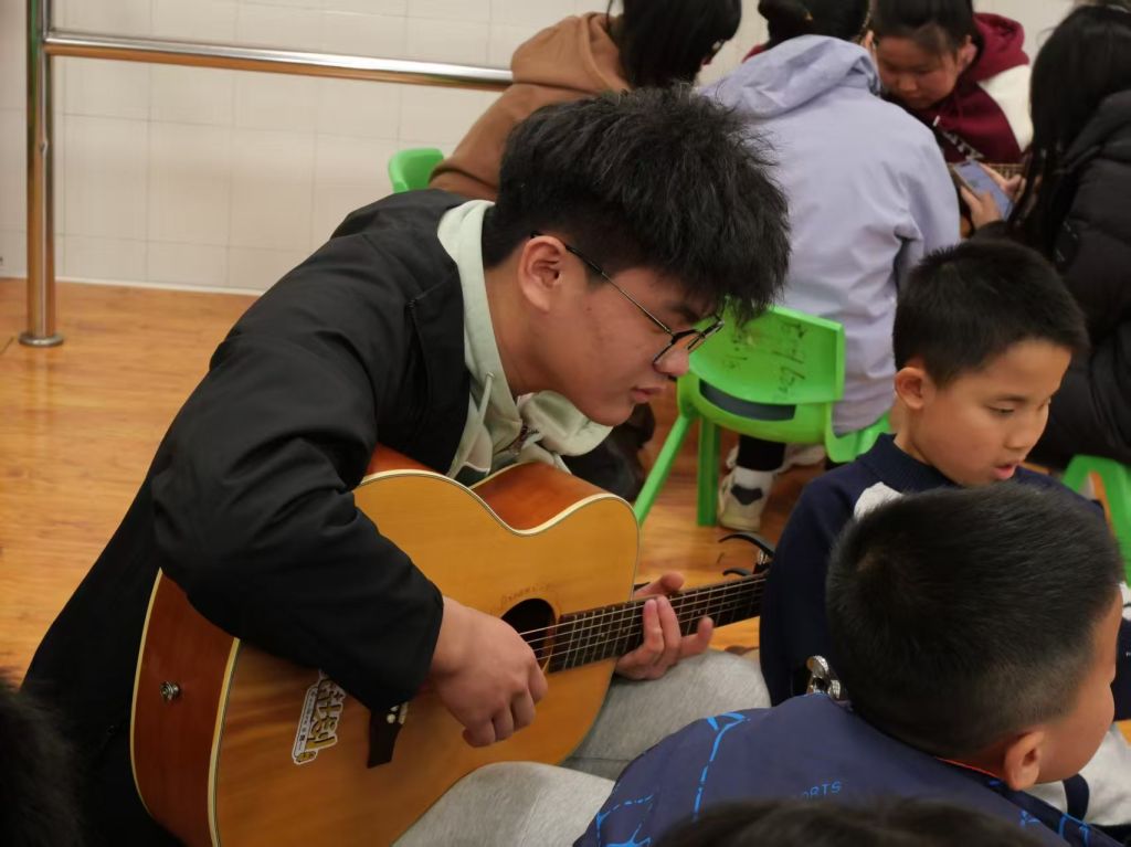“它像一颗石子投入湖面,荡起涟漪,我沉浸其中,并带走不可磨灭的记忆与收获。”材料院2025级张一俣这样形容他参与“寻光”计划后的感受。“寻光”计划,是为长沙市特殊学校的视障儿童教授吉他基础和声乐知识。本想浅浅参与的他复盘时发现,自己从未缺席过一场活动。两周一次,并不重大的投入,却给他的内心世界带来巨大触动。一次次纠正盲童的指法,一遍遍鼓励想唱但又害羞的小孩歌唱,张一俣变得更有耐心,更懂得换位思考,世界观也更加开阔。每一次活动后,他都会用笔认真记录下当天陪伴的孩子。这份持续的关怀,让他收获了内心世界的充盈与成长。