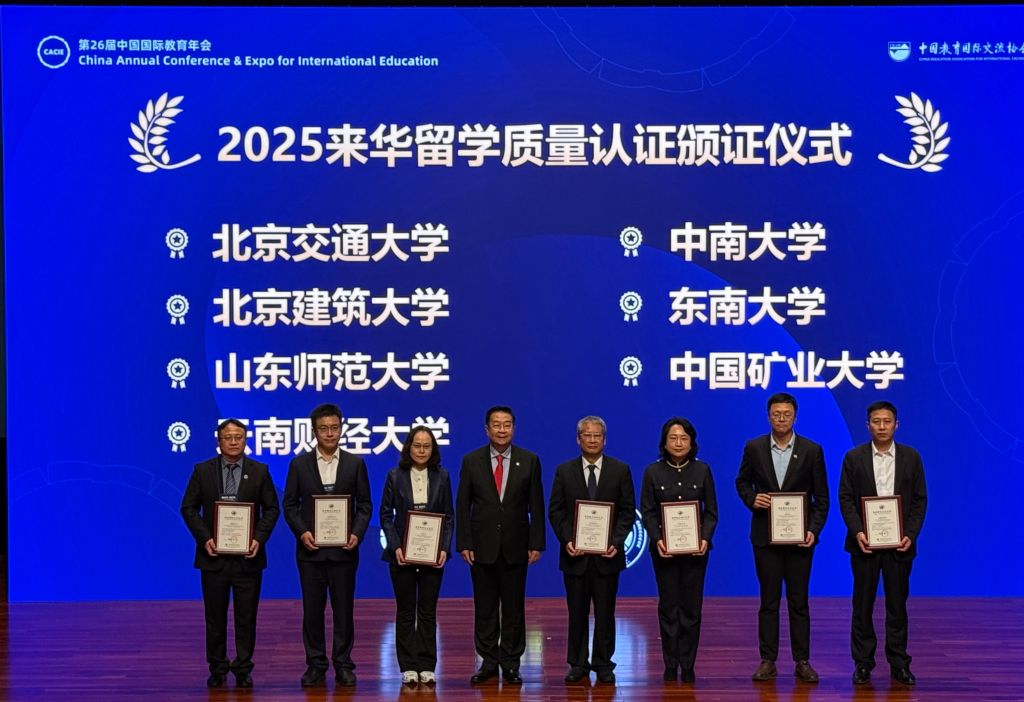 国际教育学院院长湛利华受邀出席来华留学高质量发展国际研讨会,并在来华留学质量认证项目颁奖仪式上代表学校领取教育服务认证证书。我校来华留学生高等教育以卓越的教育和管理质量获得评价等级为A,认证有效期为8年。本次认证中,全国仅有2所高校获此8年最长认证有效期。