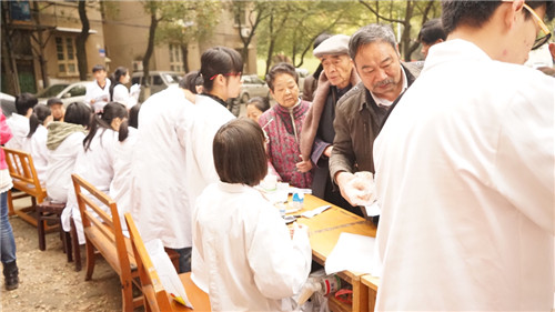 “力道合适么?”“平时要是疼啊,您就用手按住这个穴位,就会好很多。”穿着白大褂的志愿者们听诊、把脉、测血压、测血糖,俨然是一名专业的医生。“小伙子年纪轻轻,手法好啊,帮我捏一捏就感觉真的就不那么疼了。”张爷爷这样一说,周围的老人们纷纷应和表示赞同。此次活动中,义诊的志愿者们为小区居民免费测量身体指标,并就小区居民在生活中经常遇到的健康问题给出一些合理建议。