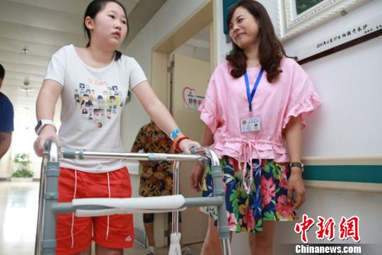 小美玲能使用助行器进行短距离行走。 罗闻 摄