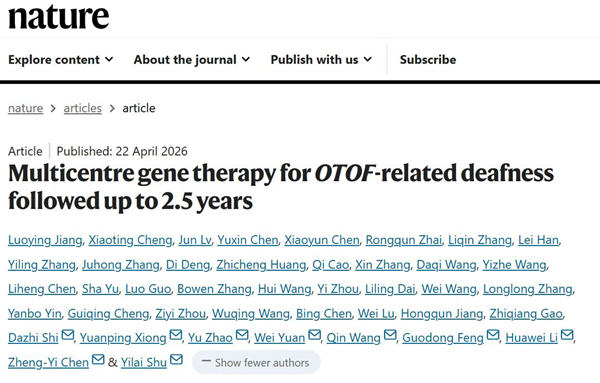 湘雅二医院汪芹教授团队合作在Nature发表先天性耳聋基因治疗多中心研究成果