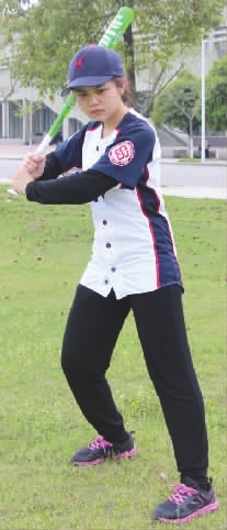 唐紫薇棒球酷装英姿飒爽。 记者 王亮 摄