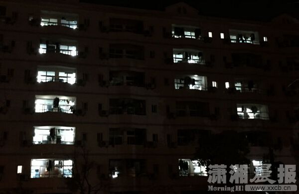28日晚,一场由学生发起的寝室灯光献礼校庆活动在中南大学升华学生公寓举行,以庆祝中南大学合并15周年。图/潇湘晨报通讯员 曹佳俊
