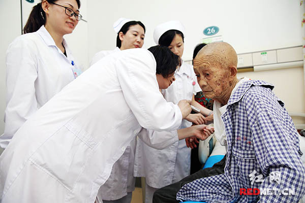 接诊陈德兴老人后,湘雅医院决定选派骨干力量为老人提供最优质和专业的医疗服务,同时为其制定了一系列富有针对性的治疗方案。“由于老人的恢复能力较差,所以我们将对其进行为期一周的抗感染和抗病毒治疗,同时辅以疼痛和营养神经治疗。”湘雅医院皮肤科主任谢红付教授表示,将举全科之力,用最好最快的方式,让老人尽早康复。