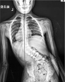 术前X片显示小佳(化名)的躯干明显倾斜。