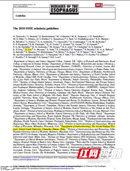 红网时刻9月4日讯(通讯员 谭玉勇)日前,由国际食管疾病协会制定的首部国际、多学科诊治贲门失弛缓症诊治指南在《Disease of the Esophagus》杂志online发表。指南邀请全球13个国家来自胃肠病学、消化内镜、手术、肿瘤、病理生理学、儿科等多个领域的51位专家学者和3位患者代表联合制定,中南大学湘雅二医院刘德良教授为国内唯一受邀专家,也是亚洲仅有的两位受邀专家之一。