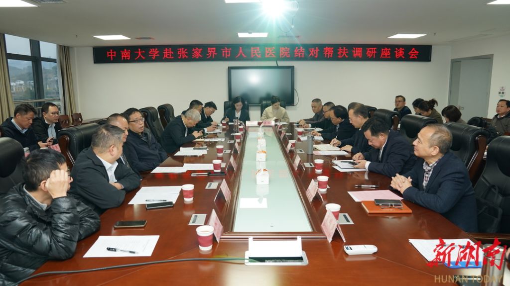湖南日报·新湖南客户端11月19日讯( 通讯员 吴伟)11月17日,中南大学赴张家界市开展结对帮扶工作调研座谈会在张家界市人民医院召开。中南大学常务副校长陈翔率中南大学专家组一行开展调研,湖南省卫健委二级调研员谢爱清、张家界市副市长闫瑞增等出席座谈,共商深化医疗帮扶之策。