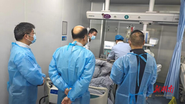 术后,伤员转入ICU,湘雅医院团队与省直中医院医护协同建立ECMO生命支持系统,并完成救治交接与后续方案部署,直至上午10点多才结束全部工作。