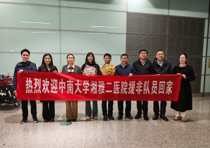 3月10日晚,中国(湖南)第26批援塞拉利昂医疗队队员、湘雅二医院普外科胃肠外科医生刘波,圆满完成为期一年的援外医疗使命,平安抵达长沙。中南大学医管处、医院相关职能部门负责人及科室代表前往机场迎接。