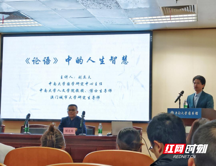 红网时刻新闻4月23日讯(通讯员 杨陵宇 彭立琼 任锦青 摄影 邓倩 张新)当人工智能能代笔论文、绘制海报、破解难题,却无法回应“为何而做”“该做什么”的深层思考,两千多年前的《论语》能否为当代青年点亮人生航向?4月22日,一场以“《论语》中的人生智慧”为主题的讲座在中南大学潇湘校区图书馆精彩开讲,共探AI时代的为人之道,让经典智慧在现代校园绽放新的思想光芒,来自校内外的160余名师生参加本次讲座。