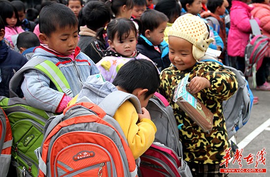 12月25日上午,国家级贫困县桂东的寨前镇水湾村水湾小学全校100多名学生高兴地从中南大学工会副主席张乃祥、县教育基金会董事长黄维意、县教育工会主席钟桂丽等人手中接过中南大学捐赠的书包和文具。中南大学还向学校捐献了40多台电脑和多媒体设备、20多个篮球,改善该校办学条件。
