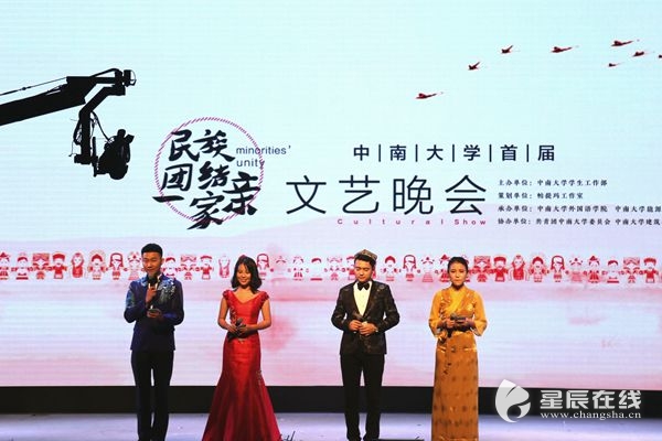 (中南大学“民族团结一家亲”文艺晚会在南校礼堂隆重举行。)