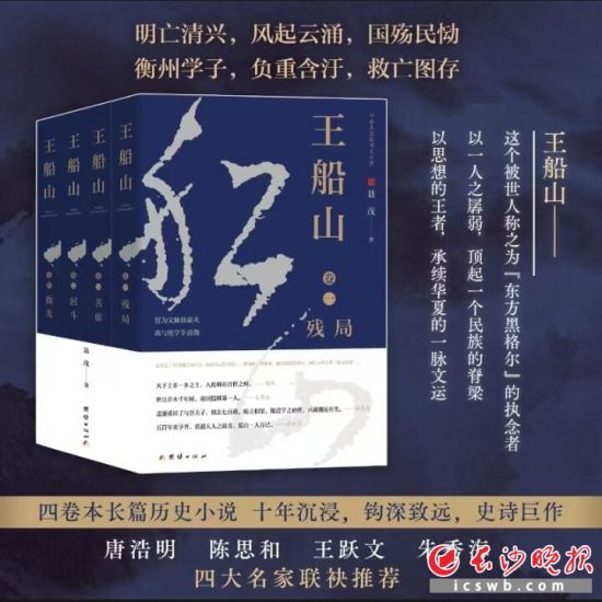 聂茂:非常感谢您的关注。我写这部小说,确实是拼了命。贾平凹说一部《废都》写“废”了他的身体。我写《王船山》,也写“残”了身体——现在经常失眠。船山先生是一位哲学家、思想家和文学家,既不像二月河的帝王系列,也不像姚雪垠笔下的李自成或熊召政笔下的张居正等历史名人,更不像曾国藩、左宗棠、张之洞等湖湘风云人物,他们每个人本身就充满传奇,在百姓中有很高的知名度。