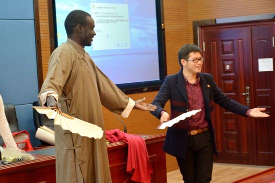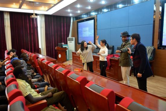 4月6日,30余名中南大学外国留学生在校园一起观看了一场中国传统艺术表演。来自泰国、蒙古、老挝、刚果(金)、南苏丹等国家的留学生积极上台试穿大褂、练习快板、学说相声,现场气氛热烈。