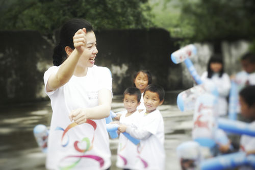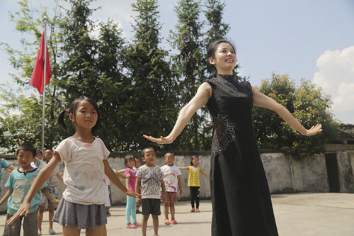 近日,白羊溪乡马入田村小里,简易的水泥操场上,21个孩子们蹦蹦跳跳,笑得很开心,纯真的眼神专注地看着两个支教老师。他们是湖南省中南大学郭贝贝文化志愿者团队的发起人郭贝贝老师和她的助教。